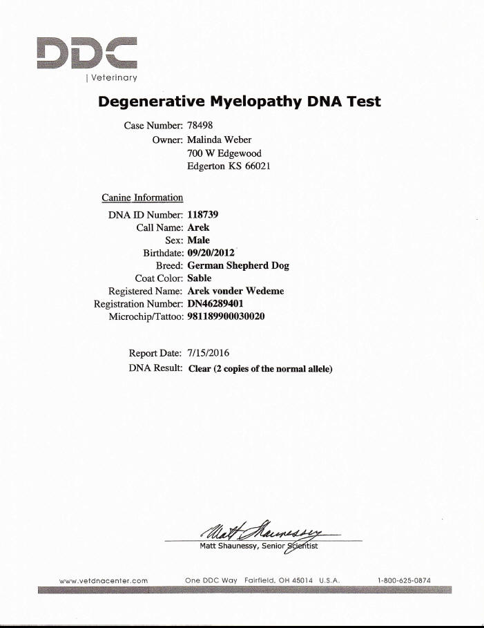 Arek's -- Degenerative Myelopathy Clearance