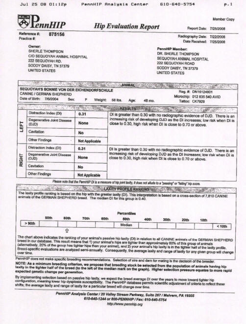 Sequoyah's Bonnie von der Eichendorfschule -- Hip Scores