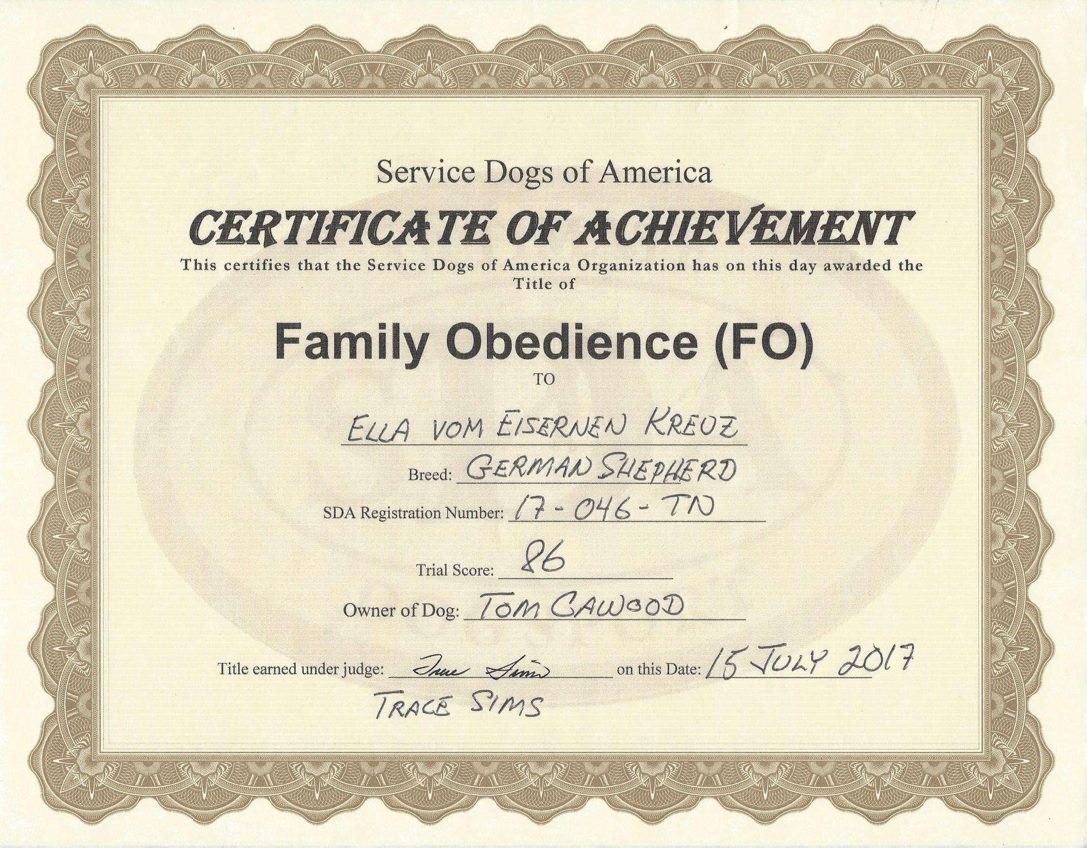 7/15/2017: FO - SDA Family Obedience Title