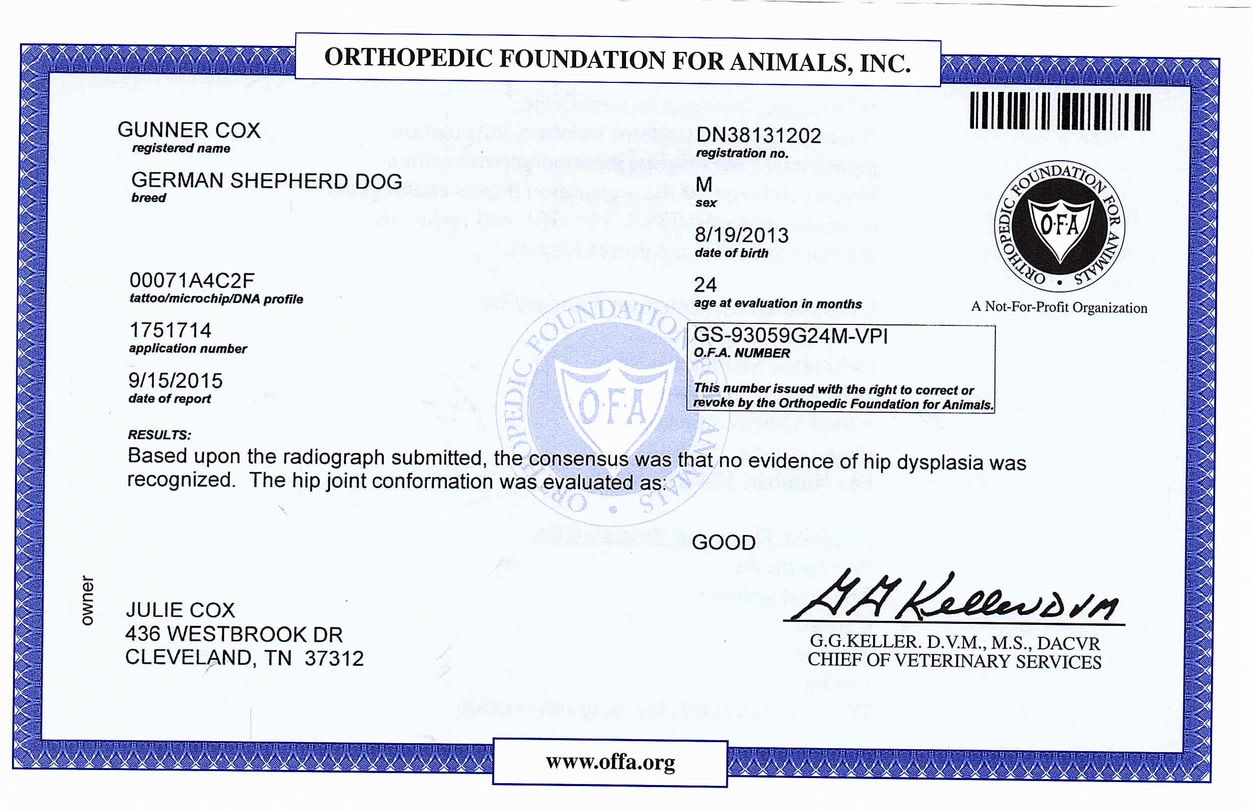 OFA Scores GOOD at 2 years: