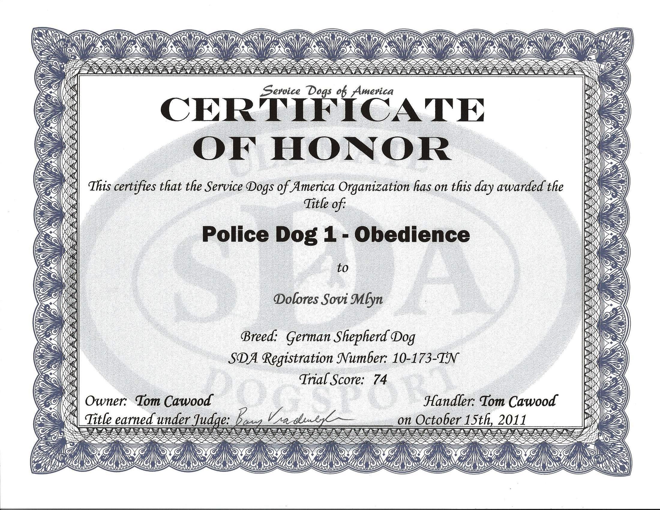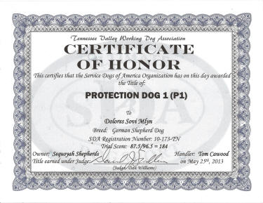 Little D's -- Titles FO - SDA Family Obedience Title PD1 - SDA Police Dog 1 Title P1 - SDA Protection Dog 1 Title