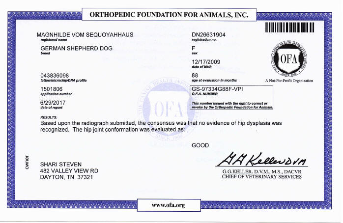kennel - 2nd to Sequoyah's own, Tigress, her own mother.