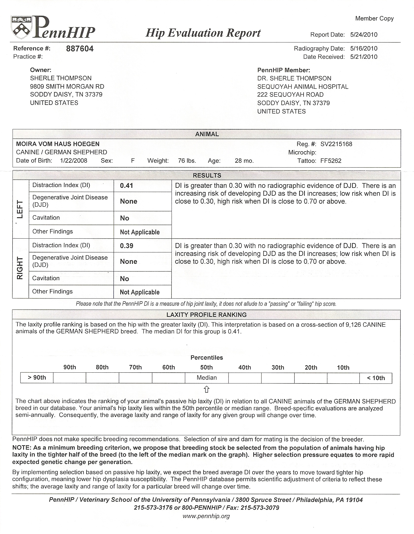 PennHip Scores: Top 50% --