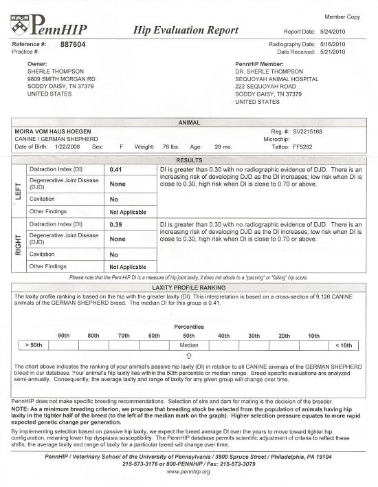 PennHip Scores: Top 50% -- OFA Scores: Under Construction......
