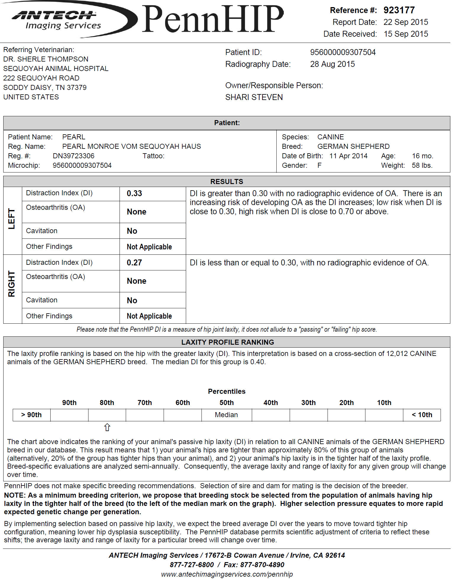 PennHip Scores: Top 20% of the breed! OFA Scores: .........
