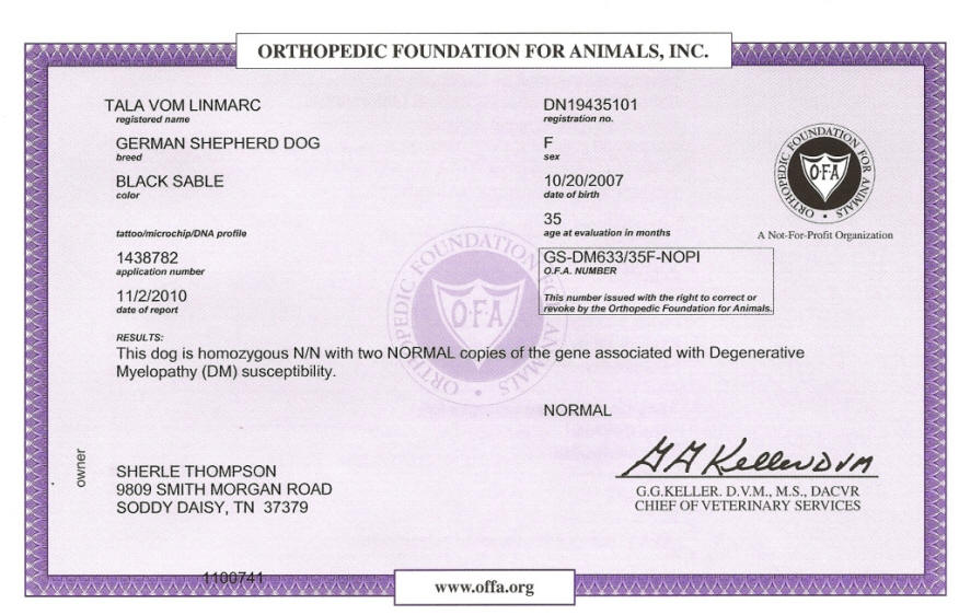 Degenerative Myelopathy Clearance