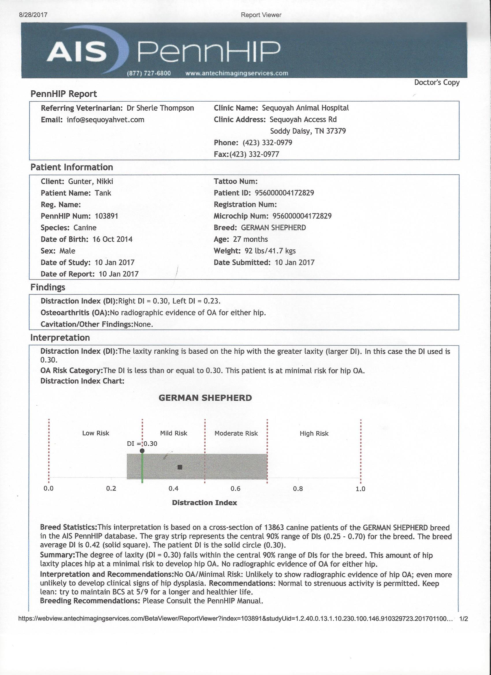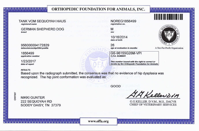 PennHip Scores: Top 20% of the breed! OFA Scores: .........